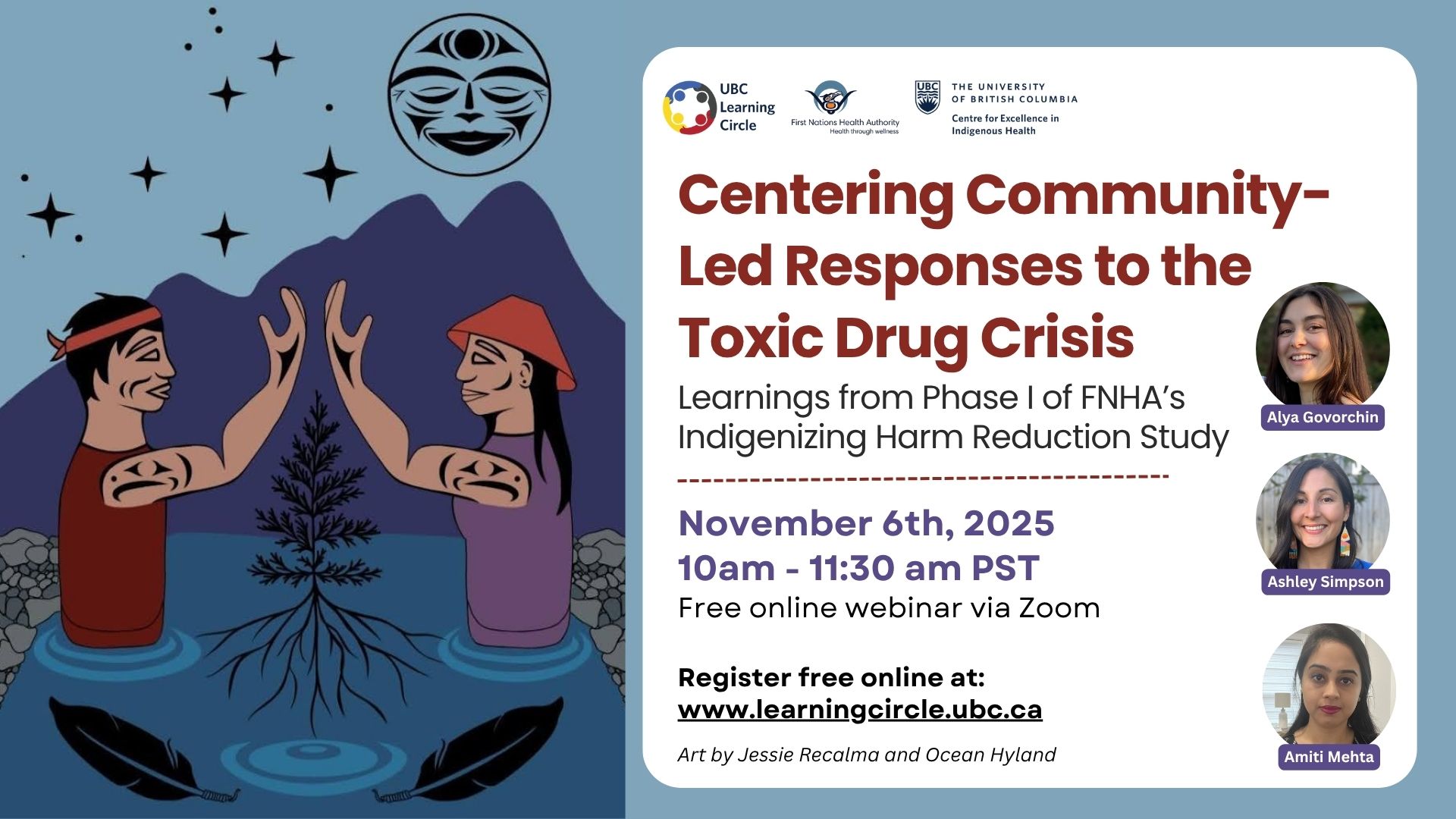 This session will share qualitative findings from Phase I of the FNHA-led Indigenizing Harm Reduction Study, including wise practices, service gaps, and community-driven solutions. We’ll also preview our community-based research activities as a part of Phase II. We aim to highlight the strengths of First Nations-led responses to the toxic drug crisis that center culture and connection for our relatives who use substances.